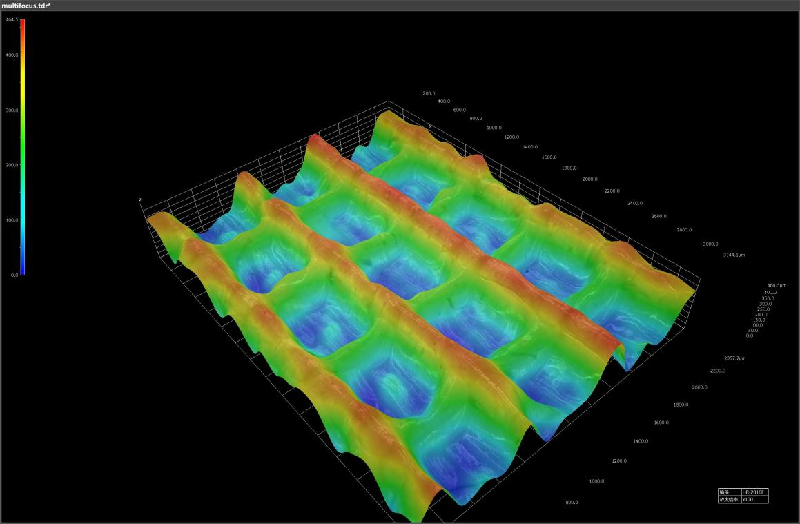 微区3D形貌的重构对于3D打印来说,有着非常重要的意义。可以帮使用者进行精准的3D建模和3D测量,在空间上获得Z向更多的数据信息,比如高度、深度、面积、体积、角度等。HRX-01三维视频显微镜在Z向提供了50nm的步进精度,最小设置步进可以到0.5μm,对需要观察的区域进行精准建模(图3)。