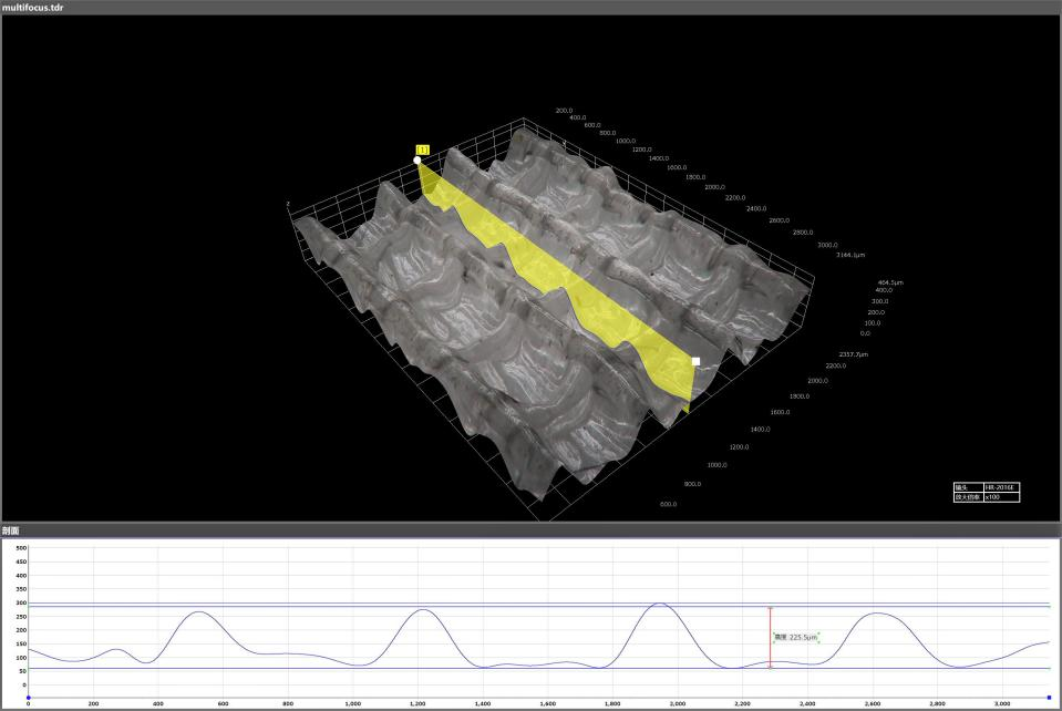 印后材料的处理及表面粗糙度评价,对于最终的产品质量来说尤为关键。在浩视的HRX-01三维视频显微镜系统的选配件中,有进阶型的NPS(光谱共聚焦,图6)的选择,让显微镜与计量仪器紧密结合,获得剖面与多个剖面,让轮廓粗糙度(Ra)和表面粗糙度(Sa)的精确测量变得特别简单而精准,所有的测量数据均符合ISO25178标准。