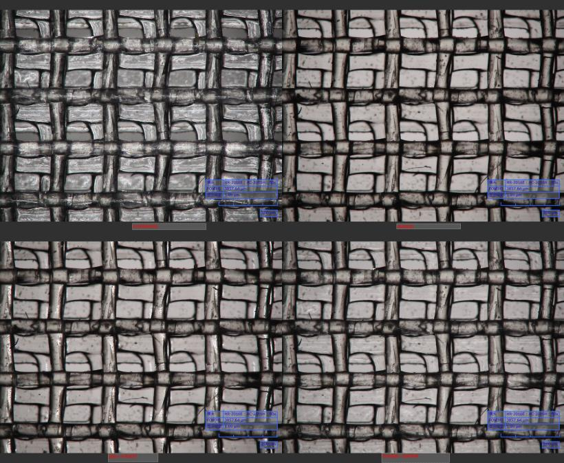 HRX-01三维视频显微镜的20~160倍/50~400倍的三维旋转变焦物镜,提供了360°三维动态旋转实时观察,而且旋转的方向和速度可以控制。能够在任何满意的角度和状态让旋转停下来,可以同轴放大观察微区或缺陷,特别是对于经纬交叉、结构性形貌、凹凸细节、添加物的表面分布、印后去除的工艺控制等方面有非常直观的图像识别帮助。在整个动态的过程中,可以录像或者拍照,为使用者提供了无与伦比的视觉感和观察体验,能够100%的获得材料或工件的形貌表征信息(图2)。